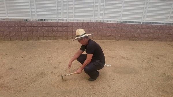 懇親の力を振り絞って根っこを掘り出しています。